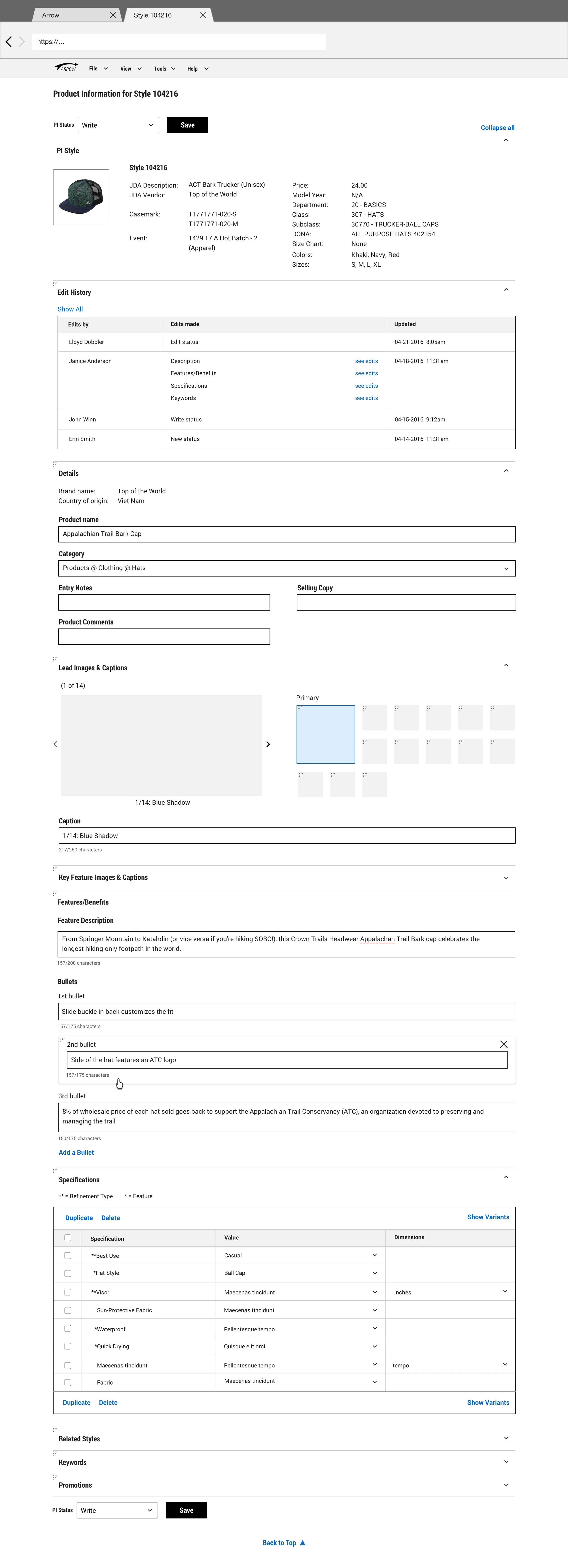Arrow is an internal tool used within REI, to support all of the REI.com products. Due to system instability and usability issues, it was determined that Arrow would be rewritten and converted from a Java application to a web application with implementation done by a third-party.